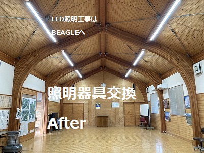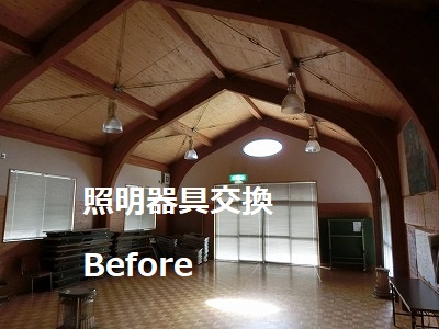 こちらの公民館は災害時の避難場所としても使用されますので、明るさの確保はとても重要です。