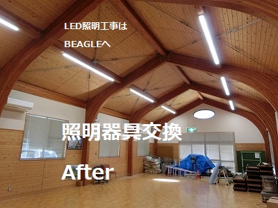 こちらの公民館は災害時の避難場所としても使用されますので、明るさの確保はとても重要です。